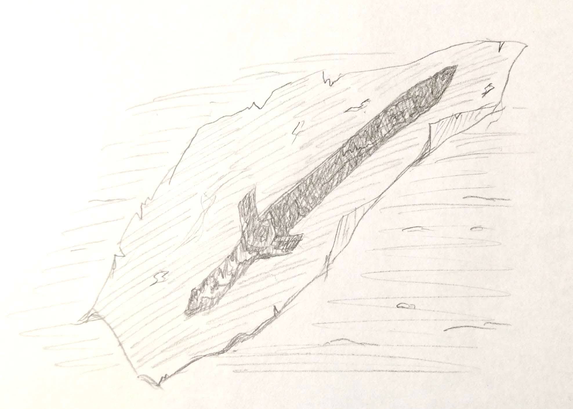 オルクは岩場を釘らしきもので削ってぐるぐると円を……闇の大穴の図を描き、そこから矢印を外に向かって書いて説明を続ける。