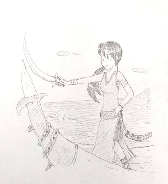 そして弓なりの……三日月のような形をしているスラリと長い剣をアルゴの船の方に突きつけ、凛としたよく通る声で叫ぶ。