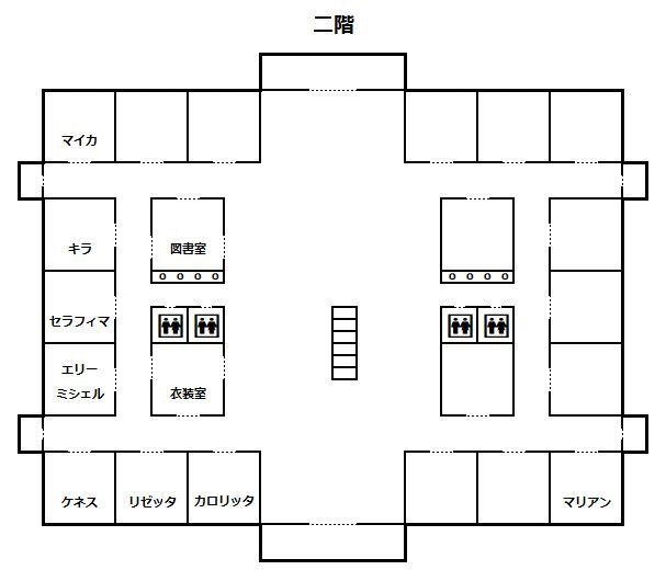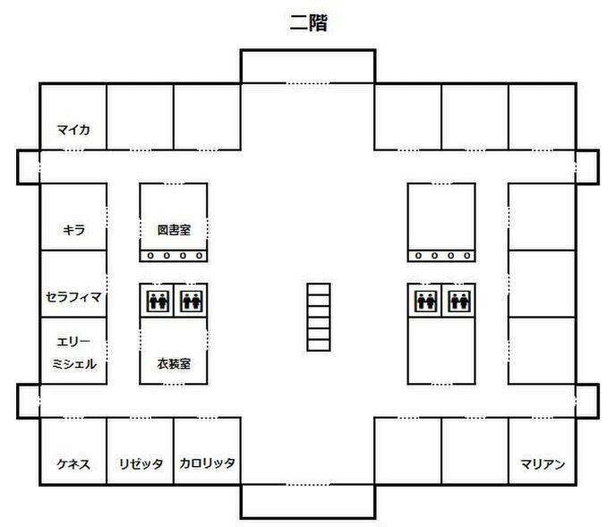 部屋は一つ一つがおよそ六メートル四方の正方形(およそ二〇畳)。ケネスが一階部分を大きくしたので、二階も引き延ばされてこのサイズになりました。