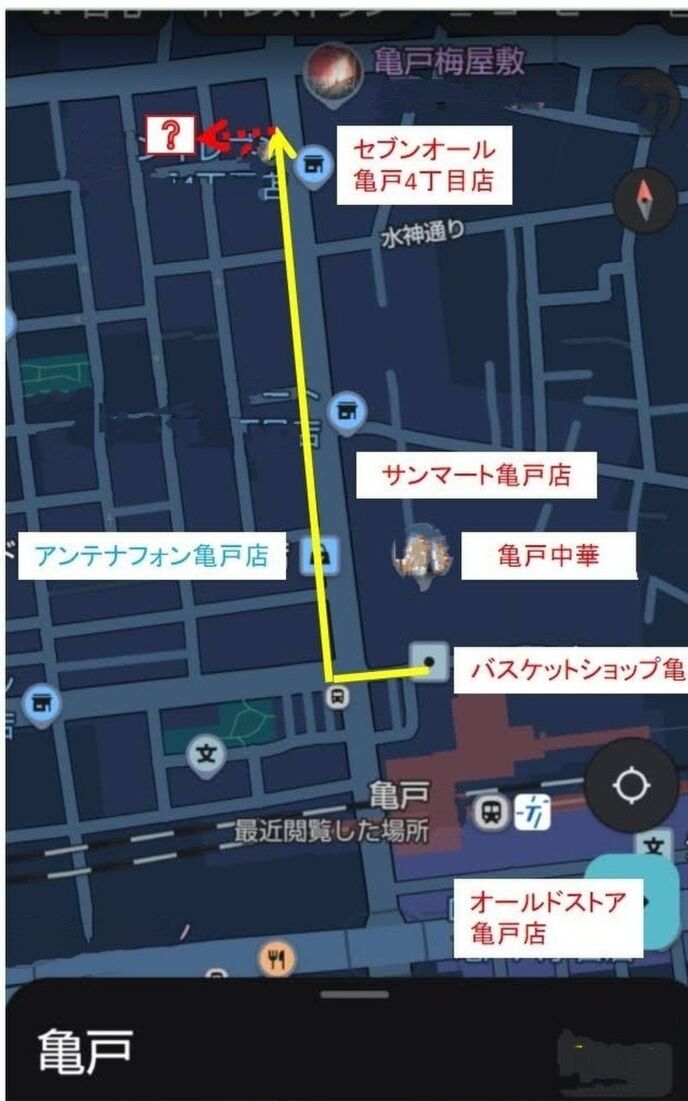 順番が回ってくるのは12時近いだろう。玲香は机の上に置いてあるタブレットを開いて、マップを開いた。亀戸駅から亀戸梅屋敷まで拡大してスクリーンショットを撮る。そして画像加工ソフトで亀戸駅から明治通りを歩いていった経路、右側のコンビニを過ぎた所まで矢印を引いた。そこからシャッター通りがあった場所は点線を使い”もうひとりの私”の場所まで矢印で結んだ。