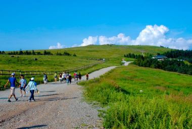 翌日は朝、起きて朝食をとり8時に宿を出て、白樺湖に9時に到着し30分程、散歩して霧ヶ峰を抜けビーナスラインに張り三峯展望台を抜け、美ヶ原高原につくと11時半で、朝、買ってきた、お弁当を広げて涼しい草原でみんなで食べた。食後一休みして20分位、周辺を散策して歩いた。