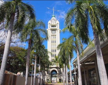 数分後、右に見えるのがアロハタワーで、その後ろに、ホノルル港があり、そこから、アメリカ、カナダ、タヒチ、ハワイ4島に、クルーズ船が出ていると教えてくれた。その先に、右側にヨットハーバーが見え、多くの大きなヨットが並んでいた。その先に行くと、右側に、大きな公園に多くのテニスコートがあり、そこがアラモアナ市立公園だと教えてくれた。もう少し先に走ると、左手に、大きなショッピングセンターが見え、そこが、アラモアナ・ショッピングセンターだと言った。