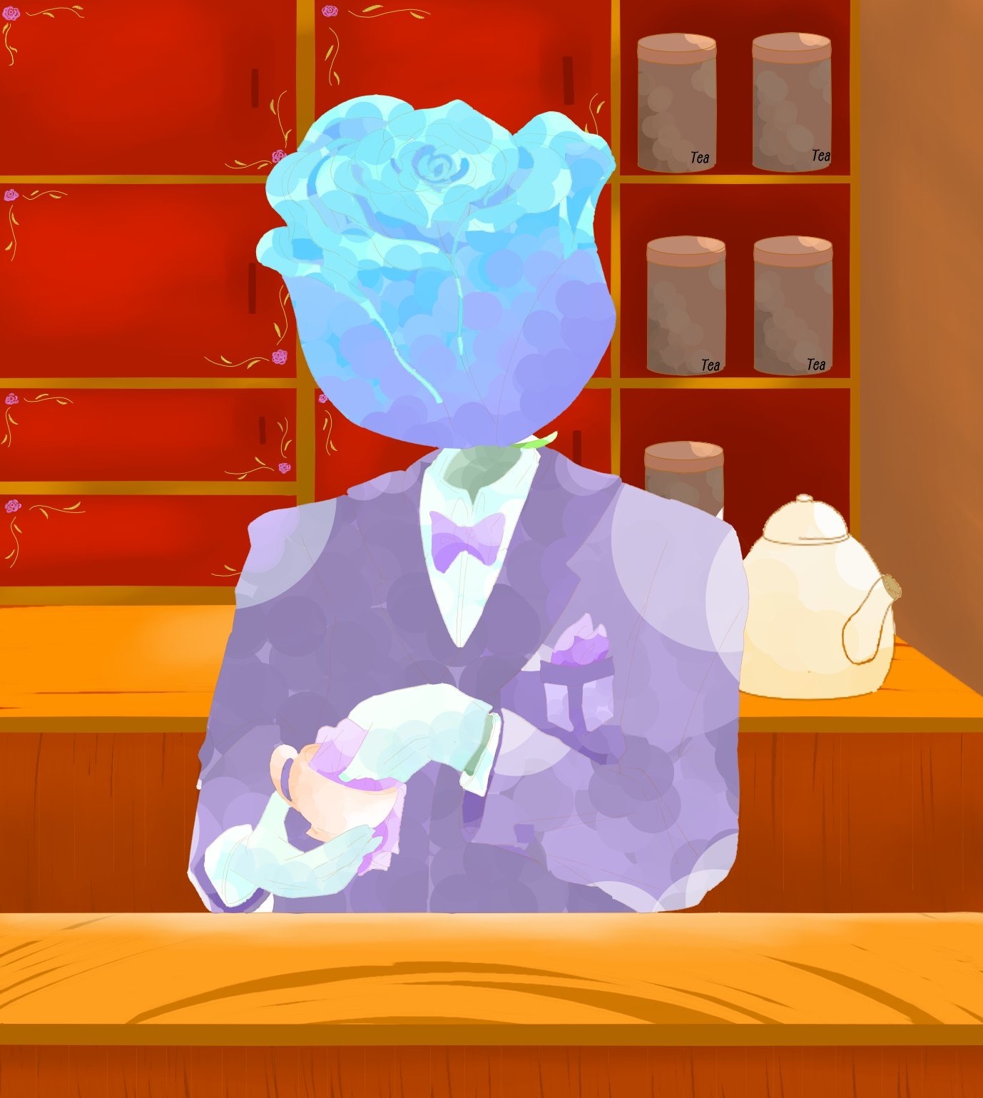 扉を開けたお客様に対し、そう言うのはこの喫茶店の店主、薔薇紳士。紳士的な口調で挨拶し、優雅にお茶を一杯カップに注ぎます。