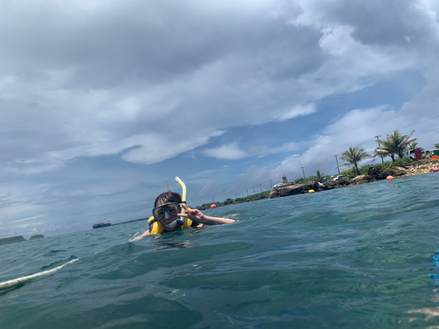 そんなシーウォーカーだけでもお腹いっぱいなのに、終了後はシュノーケルをすることができた。少し休憩してから行きたかったが、休憩スペースにいるとインストラクターからひたすら水とお茶とジュースを勧められるので、すぐにシュノーケルセットを身につけ海に出る。あんまり水分をとりすぎるとまたトイレに行きたくなるので。