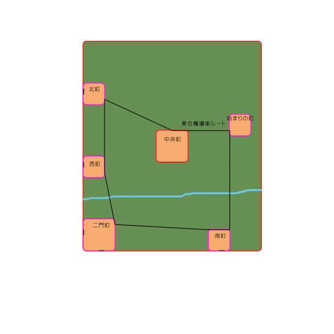 東側は世界の端のため高い山になっており、やはり出入りの必要が無い。