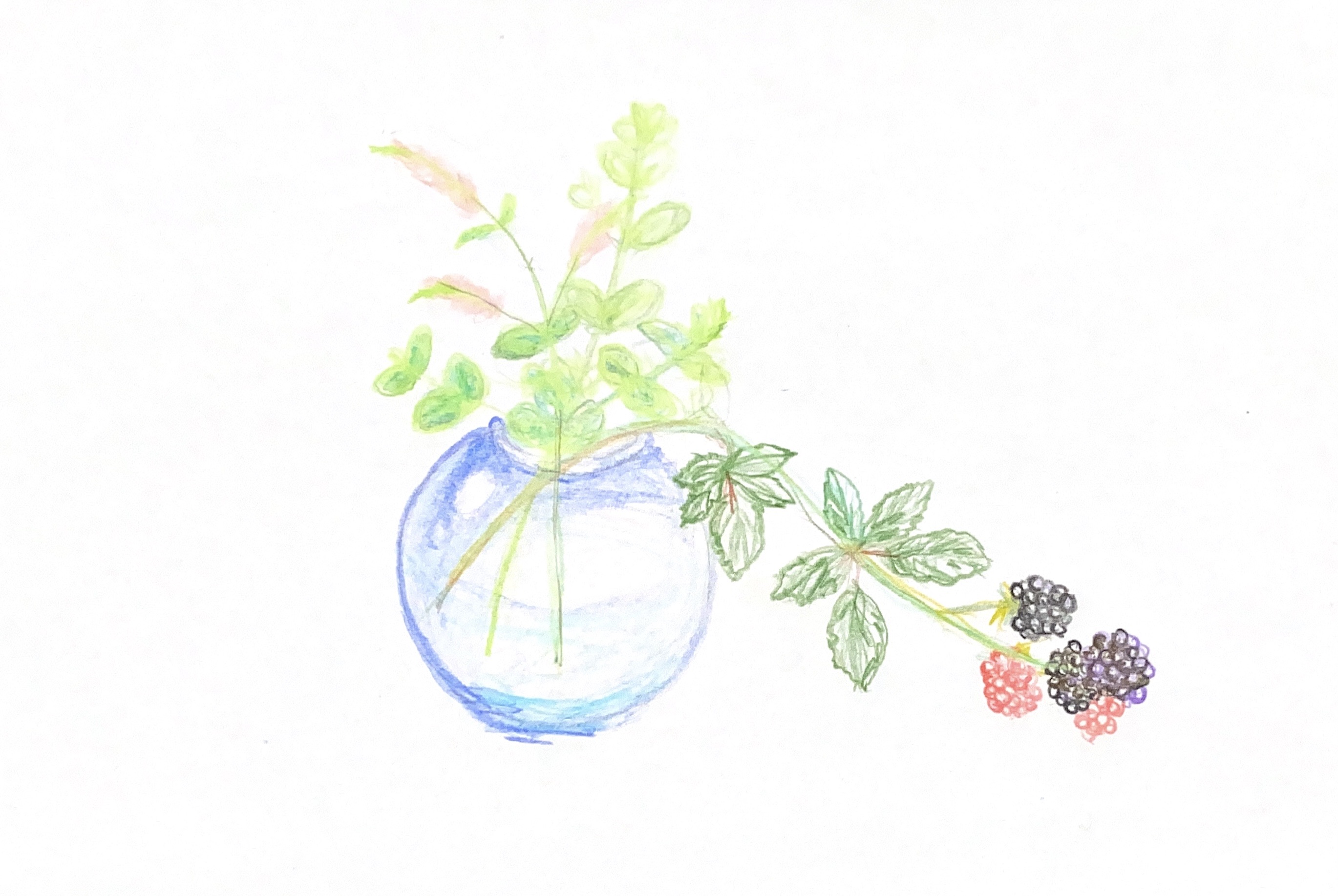 そこには昨日のミントより明るい、クレールの瞳みたいな色した葉と、デューベリーの完熟した黒い実がついた綺麗な葉付きの蔓がいけてあった。