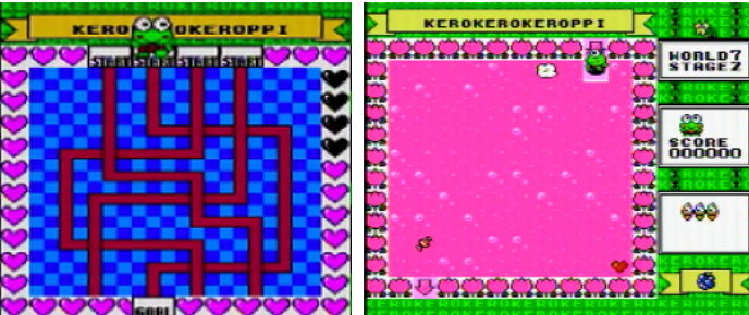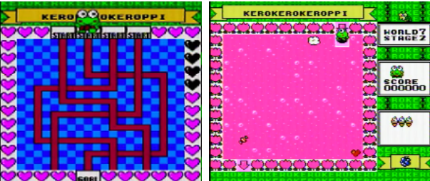 さらわれたケロリーヌちゃんを、けろっぴがあらゆるステージを乗り越えながら助けに行くというパズルゲームであーる(゚皿゚)d