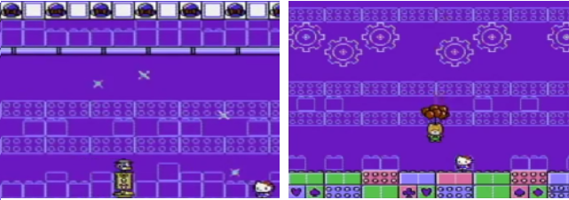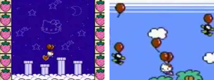 さらわれたくまちゃんを、キティちゃんがあらゆるステージを乗り越えながら助けに行くというアクションゲームであーる(゚皿゚)d