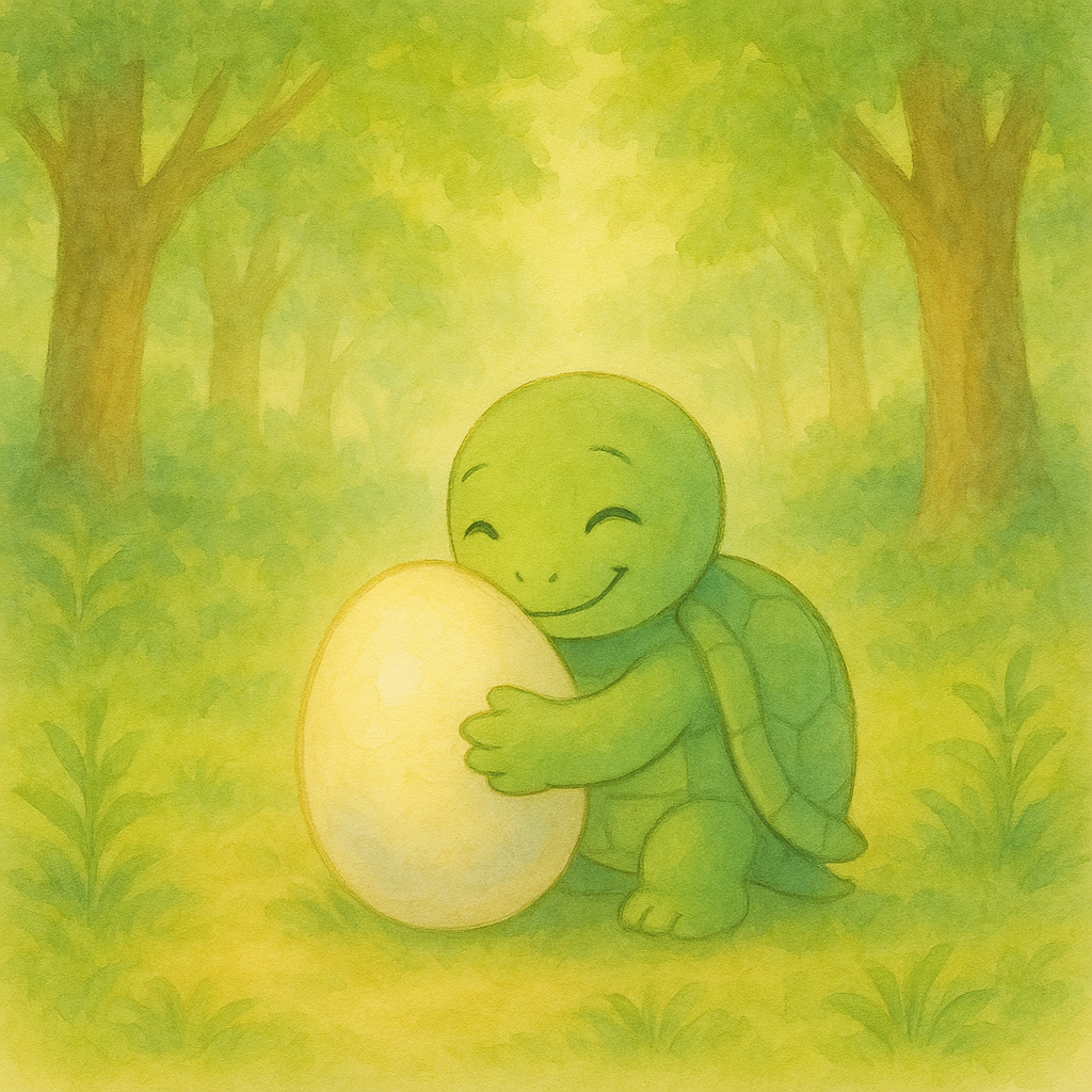 トトは そう しんじて たまごを ぎゅっと だきしめました。