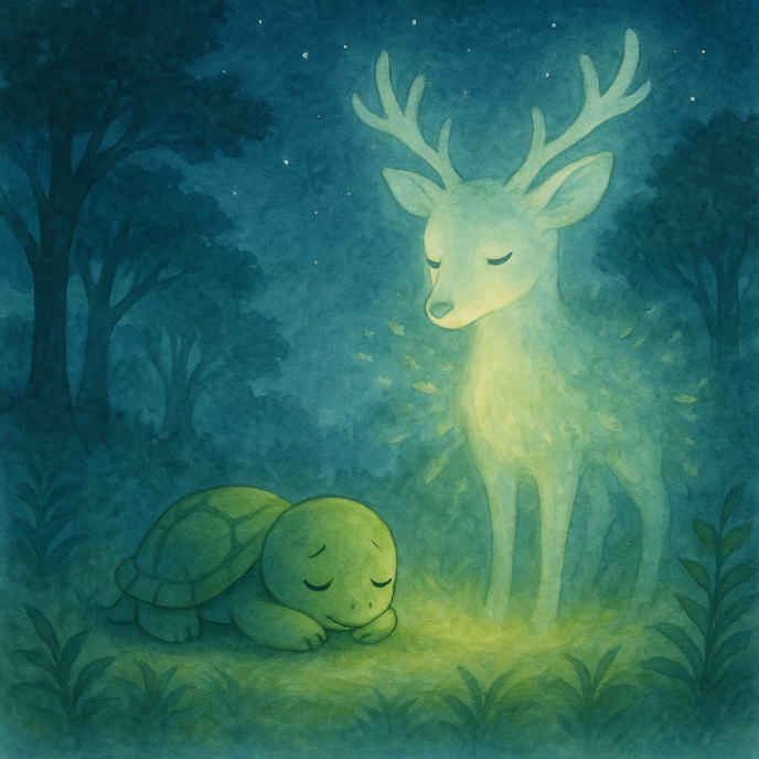 もりの おくから、やわらかな ひかりが ちかづいて きます。