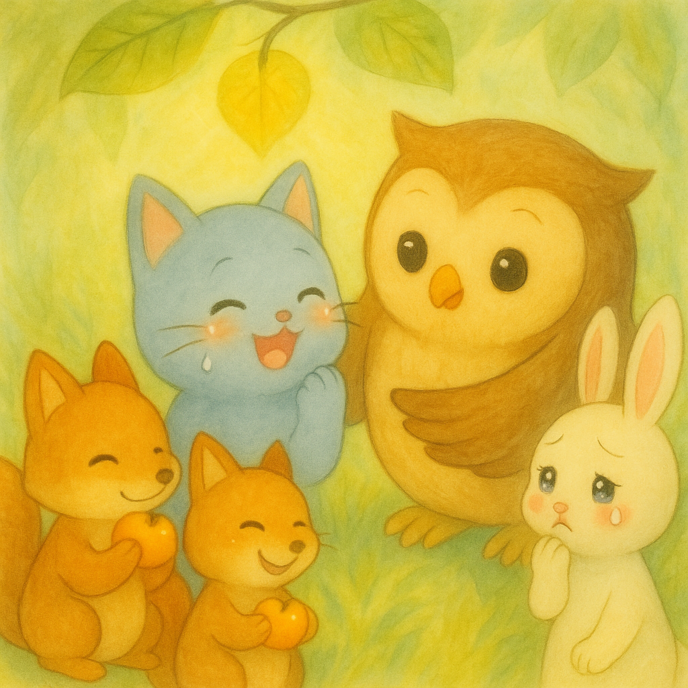 まわりの どうぶつたちは、しずかに みまもっていました。