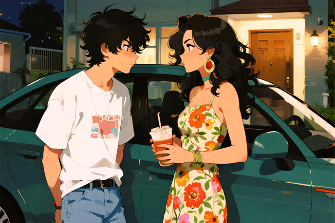 今日は顔が少し日焼けしており、目の下の皮膚が赤く、少しヒリヒリするので、濃いメイクは不向きだ。彼女はアフターサンケア用の乳液だけを塗り、眉を描き、潤いのあるリップクリームを塗り、トロピカルな柄のロングドレスを選び、カジュアルな靴とバッグを合わせた。出かける前に玄関の鏡の前で適当に髪を数回掴んで、気だるく奔放な雰囲気を演出した。