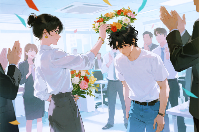 人前でのイチャつきか。若い者は遊び方を知っているな。 古株の社員たちは一斉に凝視した。