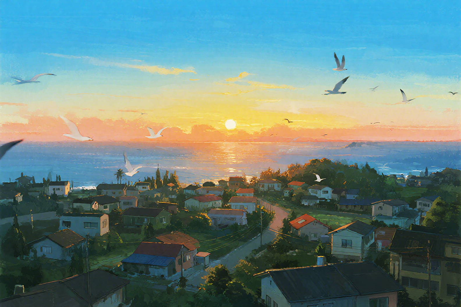 そこは夕陽の絶景で有名だが、観光客向けの展望台があるわけではなかった。彼女は道端の電柱を見つけてその下に座り込み、日没の瞬間をじっと待った。