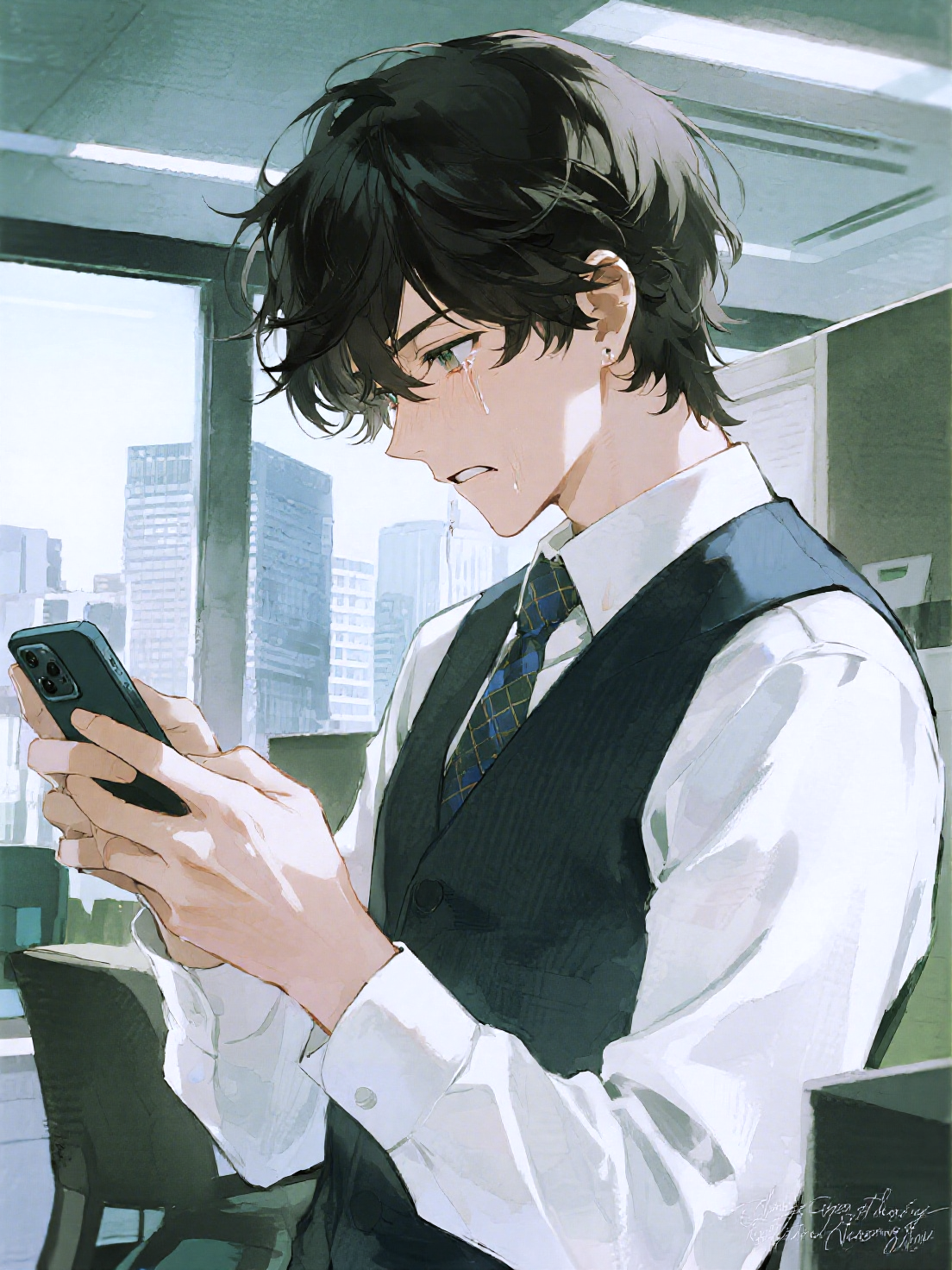 数分後、通知が届いた。彼は全身が凍りつき、手だけが震えていた。