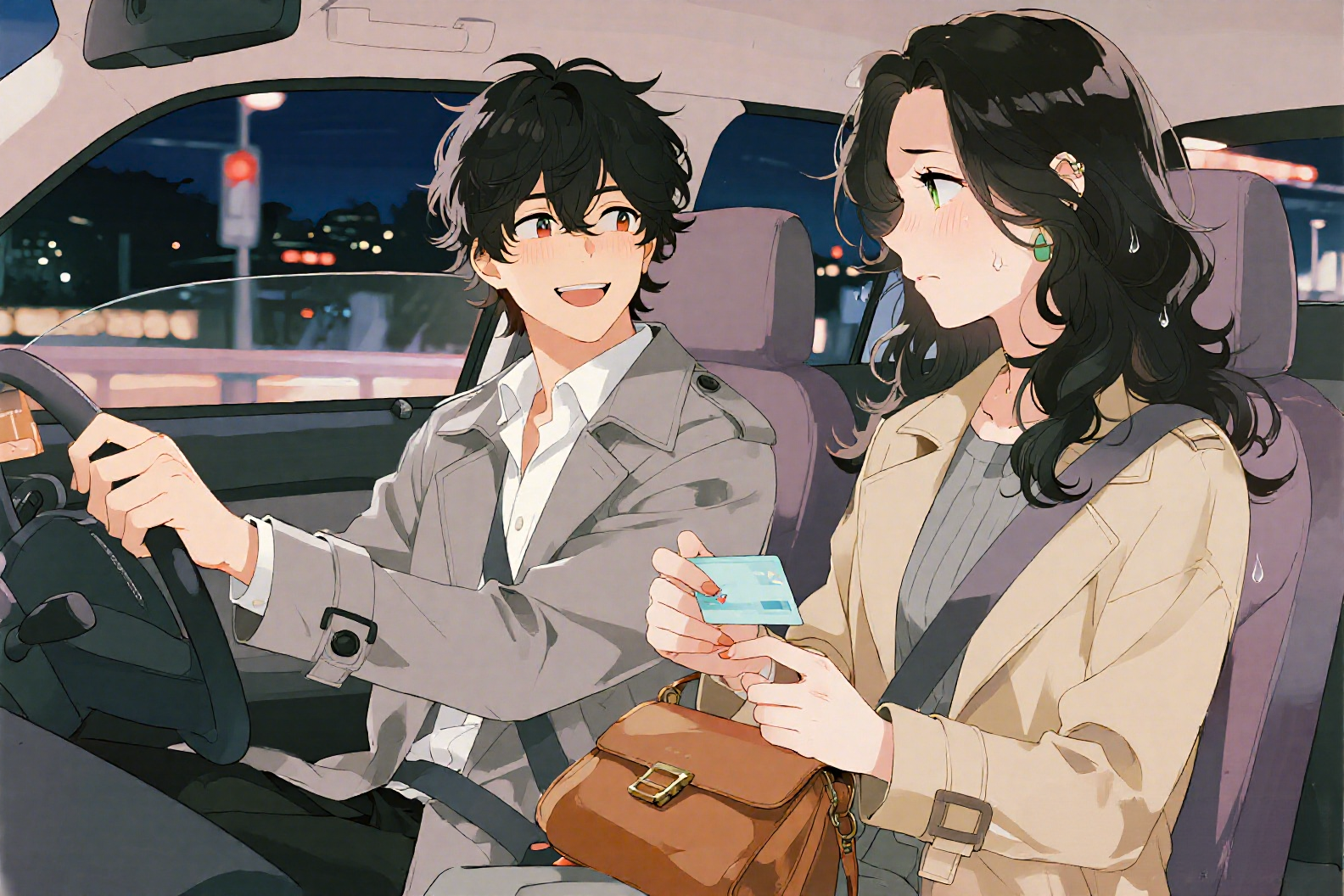 スー・シエンの体は前方に投げ出され、助手席のダッシュボードに頭を打ちつけ、「ゴン」と音が響いた。カードも足元のマットに散らばった。