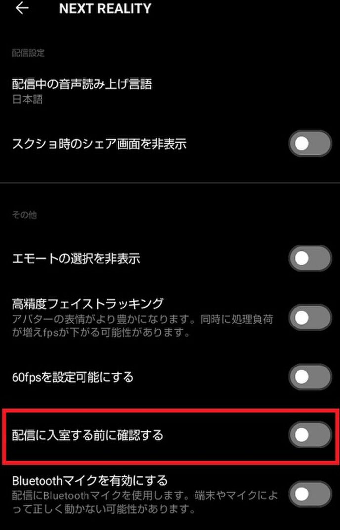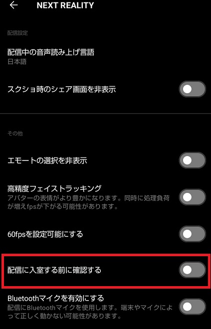 ここにある「配信に入室する前に確認する」をオンにすると、誤タップですぐに入室しなくなります。