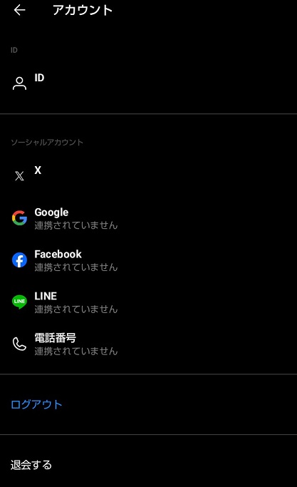 出来れば安全のため、XとGoogle、LINEなど複数のもので連携してから、ログアウトしてください