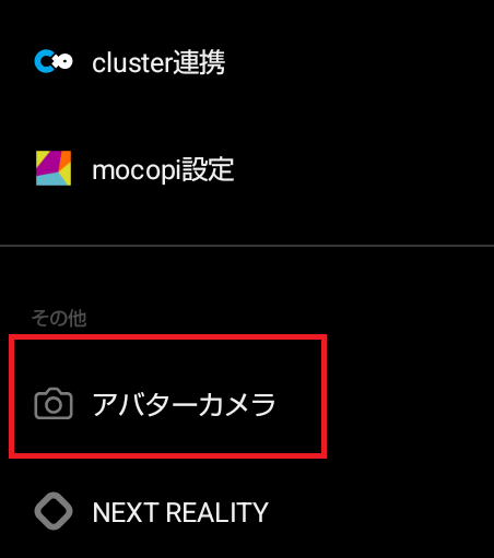 モデレーターとかのもっと下、mocopi設定の下に「アバターカメラ」が。