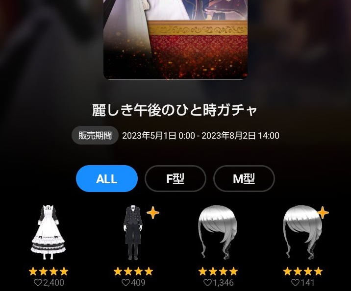 さて、このアバターフリマの対象になっているカタログのボタンを押すと、ガチャアイテム一覧が出てきます。