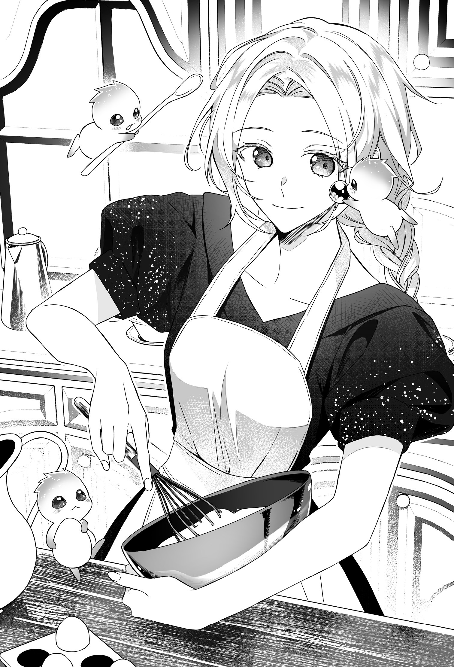 一階に降りたら、ハンガーにかけた白いエプロンを取り、腰に巻いた。