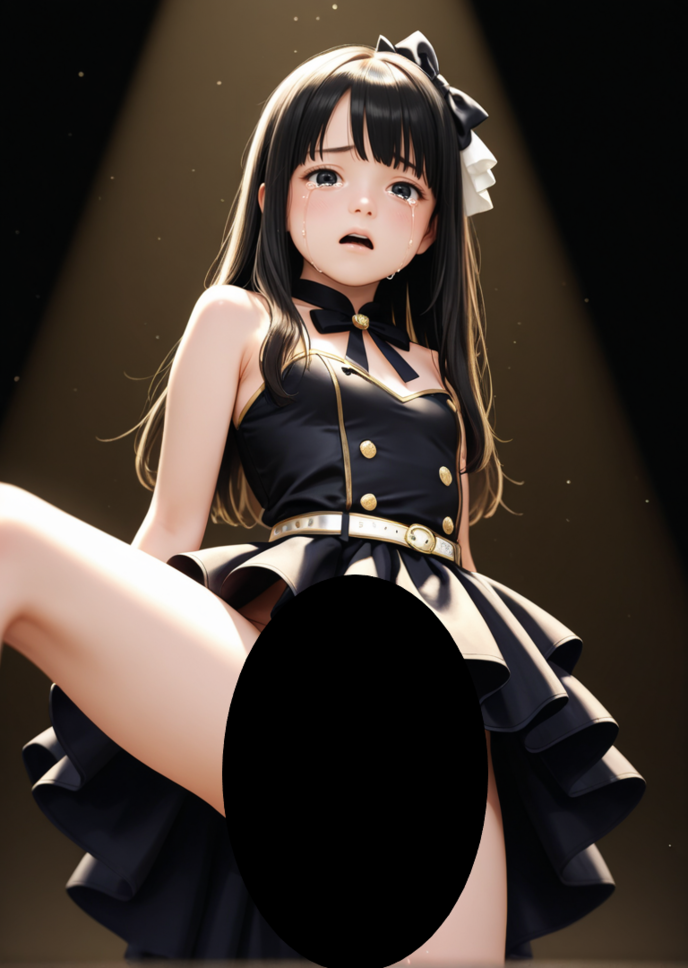 彼女は俯きながらも必死に耐える。「ほらどうした? 踊り続けろよ!」裕介は激しく責め立てる。彼女が限界を迎える。ファン達が見守る中、絶頂したのだ。下半身を震わせて彼女がその場にしゃがみこんだ。しかしショーは続いている。彼女がプロ意識を見せる。なるべく周りに影響を与えないように、すぐに立ち上がり、ライブを中断させなかったのだ。「ほう、なかなかやるじゃないか」裕介は感心する。