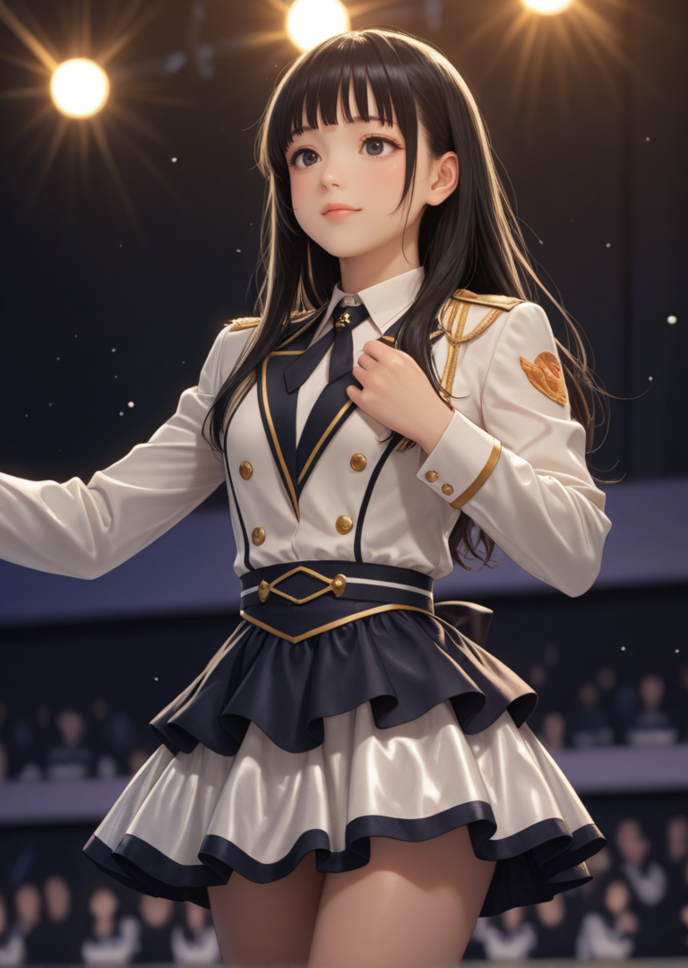 彼女の動きがまた不自然になる。裕介は激しく腰を振り続ける。若いアイドルの膣壁は裕介のいきり立ったペニスを優しく包み込み、歌に合わせて緩急をつけて締め上げる。彼女の胎奥で子宮頸部が痙攣を始める。裕介の精液を子宮へとしゃぶり上げる準備は整っていた。裕介は若いアイドルに促されながら射精する。「ドッビュウウゥゥーッ!! ドッビュウウゥッ! ビシュッ、ビュッ、ドグッ、!―――」。裕介はがくがくと腰を震わせながら、彼女の膣内に精液を流し込む。裕介の射精に合わせて彼女も呼応するように絶頂に達した。彼女の胎奥では子宮頸部が激しく痙攣し、膣壁全体を使って裕介の白く濁った精液をしゃぶり上げる。彼女の子宮口はぽっかりと開き、裕介の精液を受け入れる。大量の精液が子宮内まで流し込まれた。彼女はその場にしゃがみこみうずくまった。今回は立ち上がれそうにない。彼女の異変を察した別のアイドルが彼女を連れてステージの脇にはけていく。裕介はゆっくりとペニスを引き抜くと、ポータルを閉じた。裕介は大きな達成感と疲労感に包まれていた。ファン達が見守るなか、アイドルの公開種付けセックスが行われたのだ。裕介は大きな優越感に包まれながら、隣でペンライト持って一生懸命応援するファンの顔をちらりと見る。