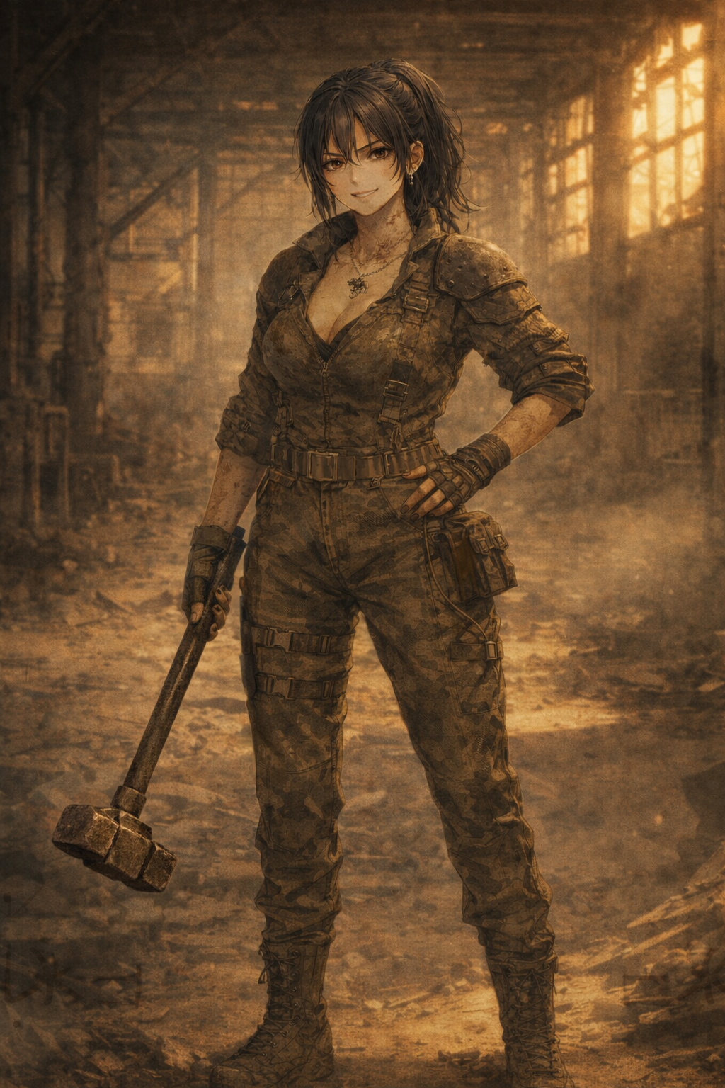 竜の墓場――居住棟の中心に穿たれた、わざと大きく開けた捕獲棟。そこは昨夜の名残で、鉄骨が歪み、罠の鎖が絡まり、ウインチの歯車が欠け、滑車が片側だけ回っていた。床板の一部は焼け落ち、露出した梁が黒く煤けている。