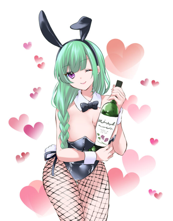 バニーさんが片足を折り曲げて、ワインボトルを胸の谷間に挟んで私を待っていた。