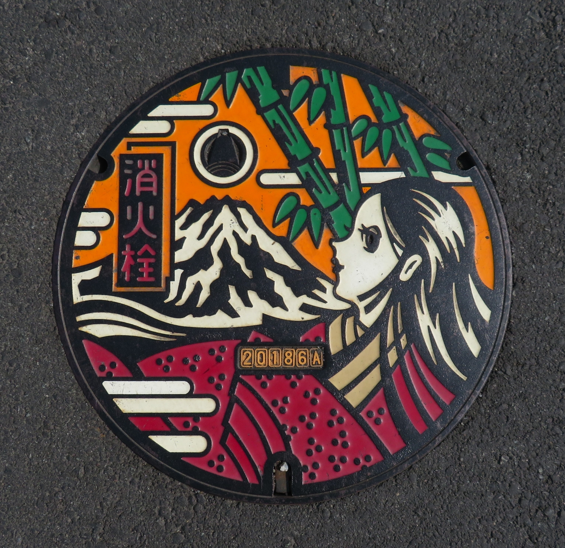 【かぐや姫肖像。なんと富士市のマンホールのフタです。粋なフタ】