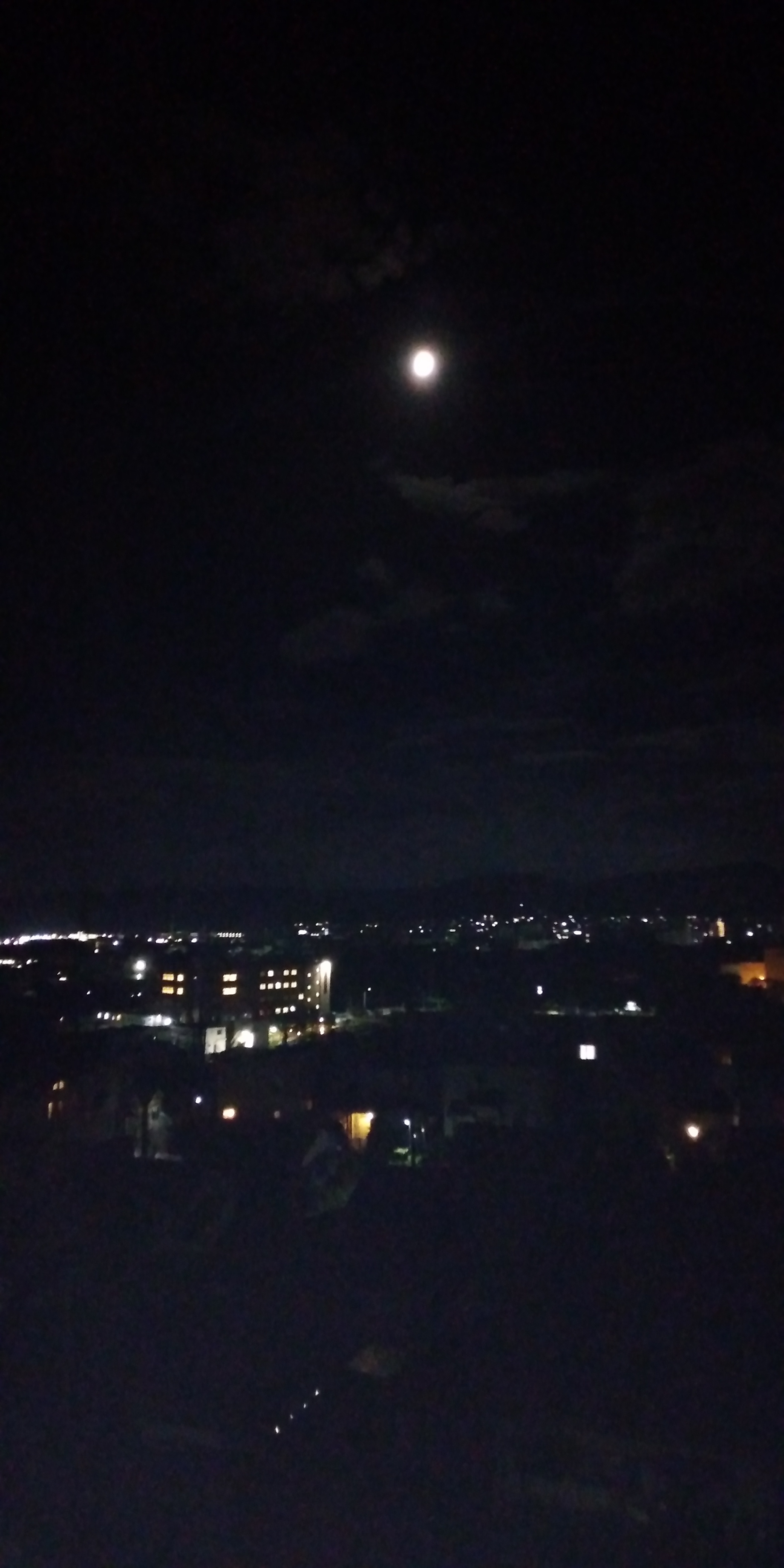 ↓ スマホで団地5階ベランダから。てんでピンボケだが実際には雨雲の間から綺麗な十日夜(とおかんや)が望まれた。今晩も眠れぬが(ストーカー災禍😣)月のさやけさに慰められた。😀