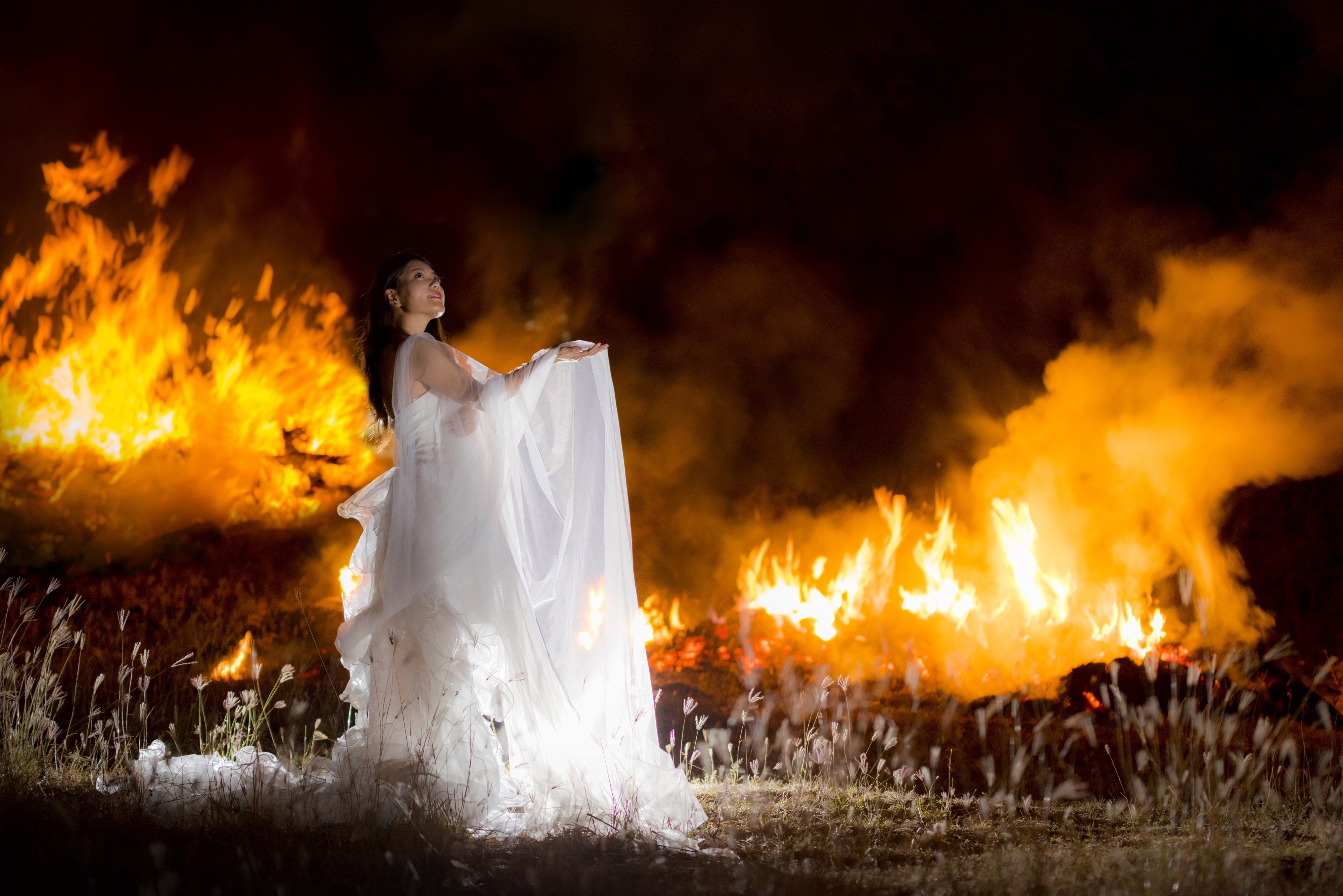 見れば確かに西方の上空の一点、まばゆいばかりの光があらわれ、そこからはえも云われぬ芳香と、おだやかで絶妙なる楽の音が、七色の虹となって響きわたってくるのだった。なんとも云えぬ懐旧と故郷へ帰るがごとき思慕が璋子の胸をおそいくる。文字どおり引き寄せられるがごとく西行とともに身が浮き上がったと思われた刹那、しかし…「あじなきや(なさけないことだ)、子らを見捨てて行く人かな」という決めつけるような男の太い声が璋子の耳をついた。続いて足下の六つの業火より「おたあ様」「はは君様」という幼子から成人にいたるわが子と思しきそれぞれの声がつたわって来た。稚児のままに逝かせた二宮はじめ皇子皇女らが業火の主と知れるや「通仁!君仁!」と、たちまち半狂乱のさまで足下の闇に、地にもどる璋子であった。是非もなし西行も降り来たっては璋子の耳もとで「惑わされてはいけません。これはあやかし(妖怪)のわざです。そもそも稚児のままでみまかられた、無垢なる二宮が業火に堕ちるでしょうか。また斎院(いっき:平安時代、京都の賀茂神社に奉仕した未婚の内親王または女王のこと。ここでは鳥羽・璋子の長女で甚だ若くして逝った禧子を指す)のままにみまかられた禧子(わいこ)内親王様はすでに御昇天なされ、崇徳様はじめ宮様方はなお現(うつ)しにおわします。み心をもののけに煩わされてはいけません」と力強く告げてその狂乱をしずめるのだった。他方もののけに対しては「皇子皇女(みこひめみこ)様らの声音を使い、このように宮をたばかるとはなにごとか!汝、魔性のもの、疾く去れ!」と大音声で云い渡す。するといかなるあやかしのわざか、六つの業火が横に走ってそれぞれがつながり、ついで西行と璋子のまわりをゆっくりと廻り始めた。その一か所から強く炎が立ったと見るや火の輪全体が異形のものへと変わって行く。すなわち炎の輪がとぐろとなり、立った炎がかまくびとなって、挙句胴回り三尺はあろうかという大蛇へと変じた。その口から瘴気を放ちつつ「うぬこそ讒言(ざんげん:たばかり、嘘)を吐くな。痴れ者が。このわしを魔性と云うか。わしこそはナーガ。古(いにしえ)より神にして三界の王であり、また三界そのものでもある。だからわしから離れては誰も、どこへも行くことは出来ぬのじゃ。汝中宮璋子よ、このようないやしき者に従い行くは笑止なり。汝が睦み馴れたる白河、鳥羽も、また汝が皇子らも、すべてわが内にこそ存在しているのじゃ。なぜなら生き死にの輪廻さえ、わがうちにあるからである」などとたくみに人語をあやつっては璋子をたぶらかそうとする。