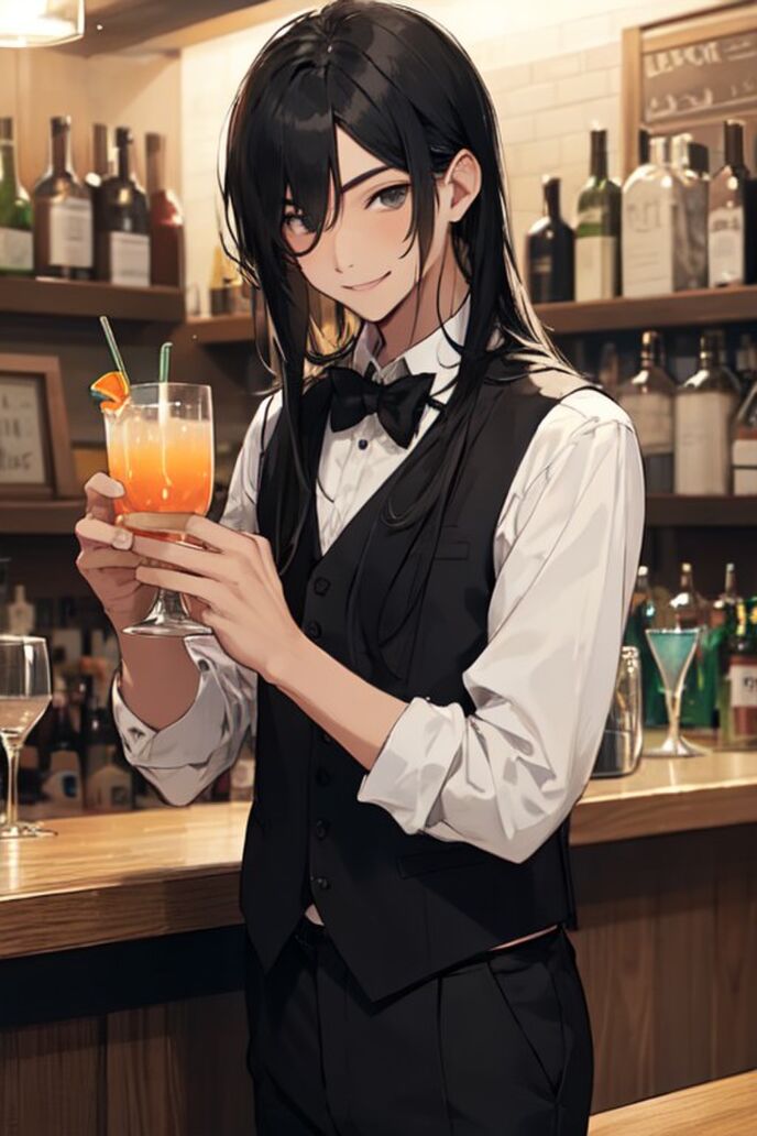 真面目だが強気で、どこか挑発的な笑みを浮かべる青年。