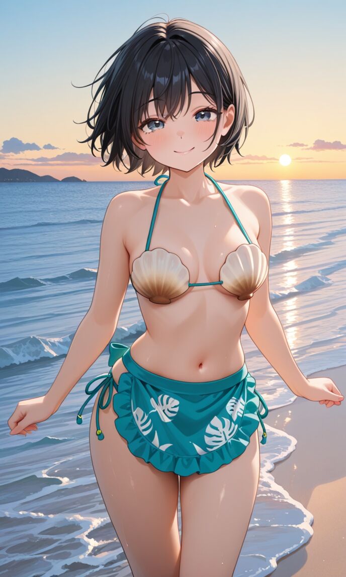 「お忙しい中すみません。「ホタテ水着」が上手く生成できません。どうやって作画されましたか?教えてください!」