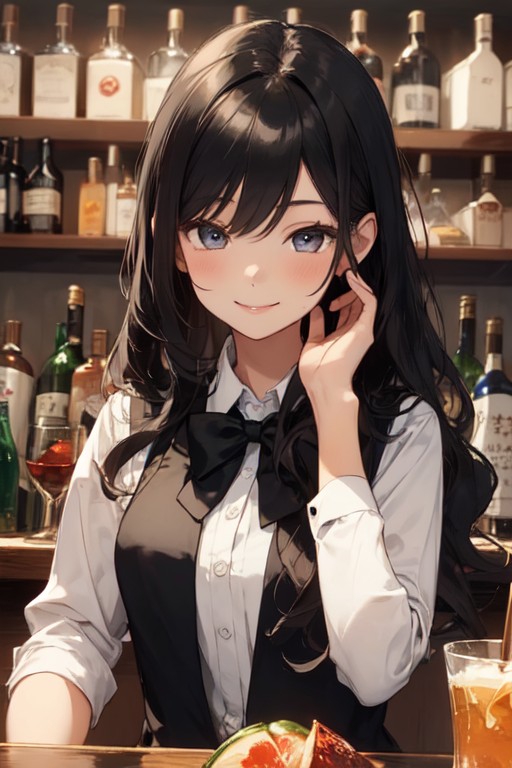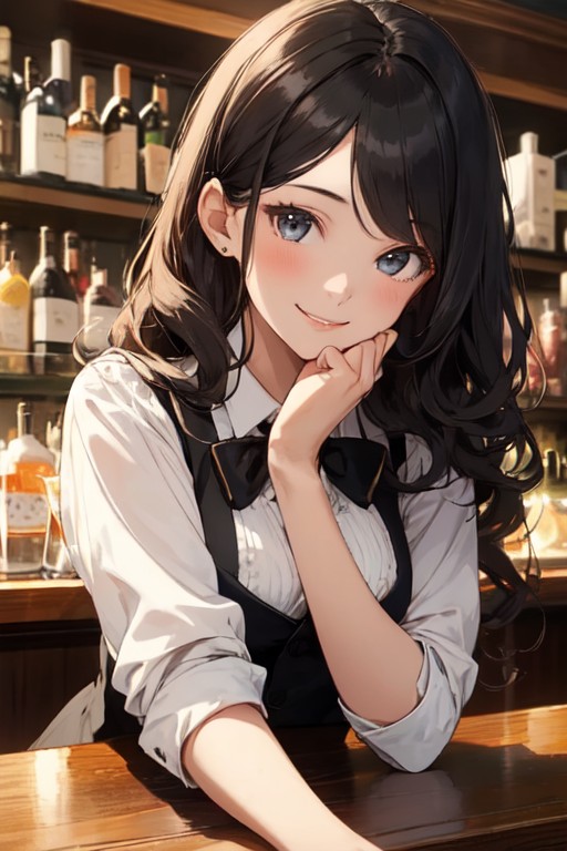 晶はカウンター越しに前屈みになり、靖に顔を近づけ囁き目配せした。