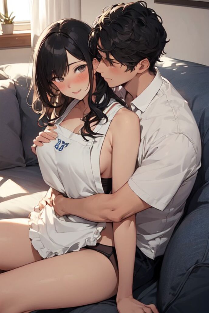 10分後、しっかりと火が入れられた豚の生姜焼きの皿が出てきた。「サラダとスープは店から持って帰って来たのでごめんね。」とテーブルに配膳した晶はにやけ切った靖に「何緩い顔してるの?」と聞くと「いやぁ、俺の為にご飯を作ってくれる晶さんのエプロン姿があまりに可愛いんで勝手に頭の中で晶さんと夫婦になってました。すみません…。」と謝ると晶は耳元で晶が囁いた。