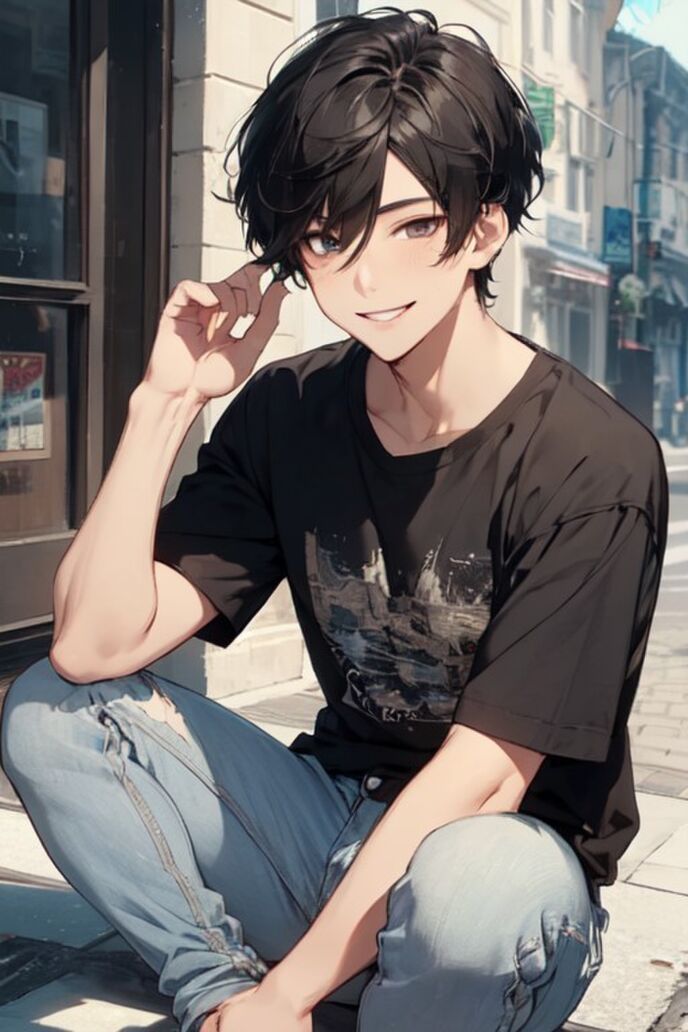 真面目だが強気で、どこか挑発的な笑みを浮かべる青年。