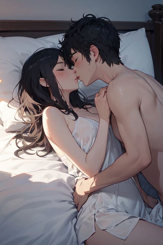 靖は眠っている晶にキスするとかすかに晶の唇が開いた。靖は舌を晶の唇の隙間に差し込んだ。舌先が晶の舌に触れ、小さく絡んだ。徐々に晶の唇は開き、初めての深い口づけは1分続いた。晶が自然に唇を閉じ靖と晶の初ディープキスは終わりを告げた。