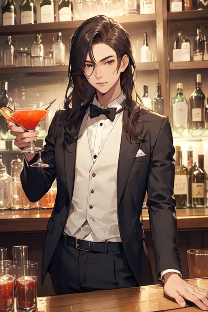 真面目だが強気で、どこか挑発的な笑みを浮かべる青年。