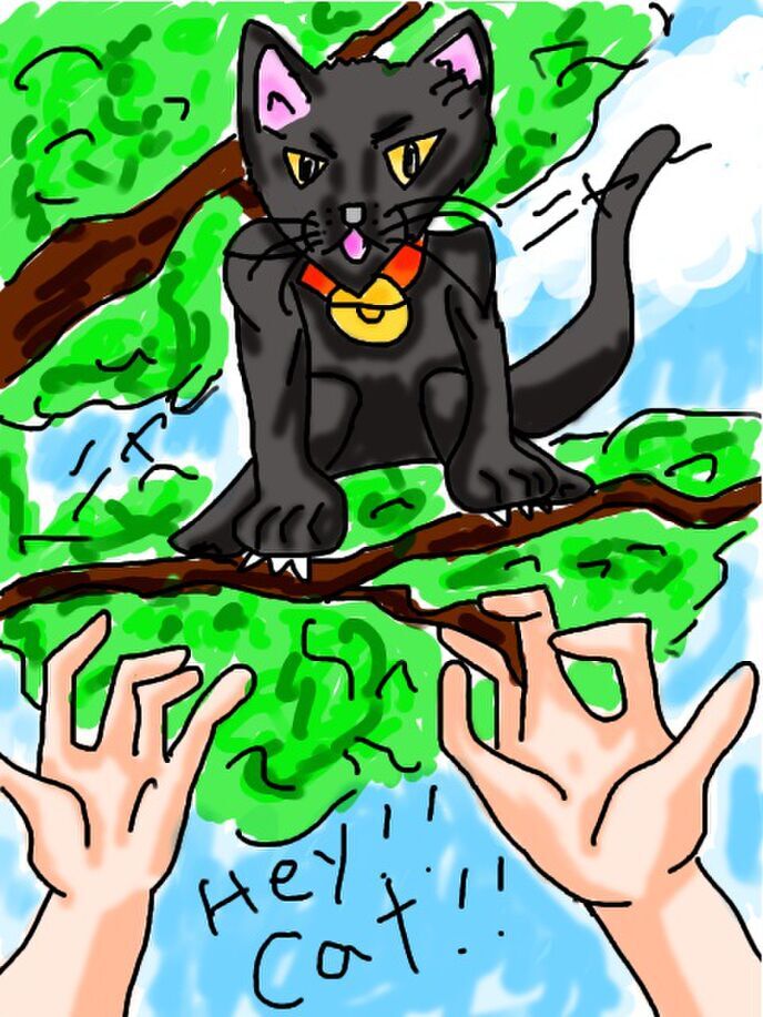 何故か木に向かって話しかける。声に釣られて上を見ると、ずっと探し続けていた黒猫がいるじゃないか!