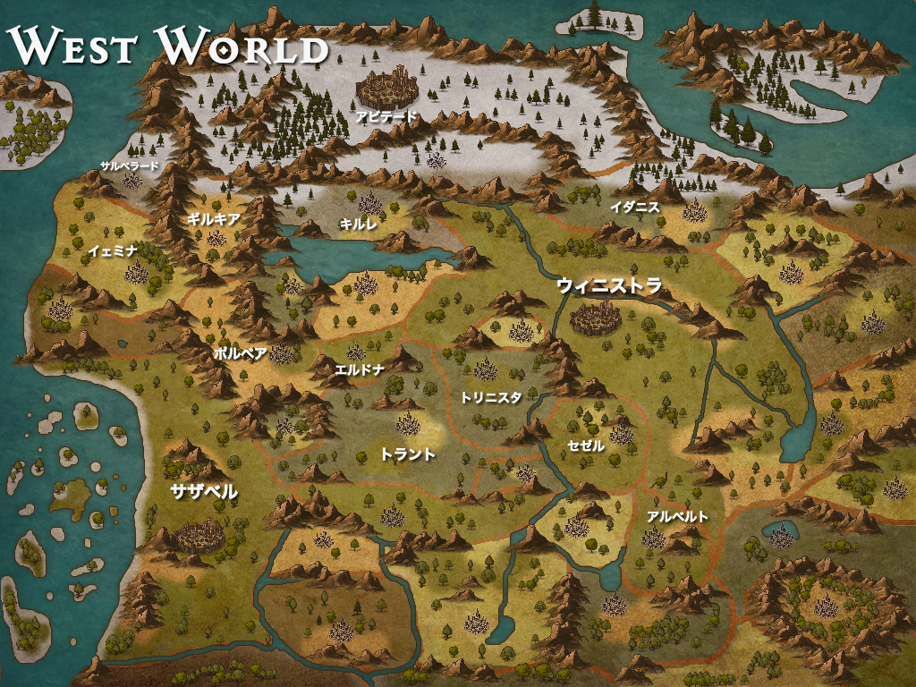 物語の進行上、国の名前や形、規模が変わることがありますので、以前見た地図と違うと思われることがあるかもしれませんが、その点はご了承下さい。