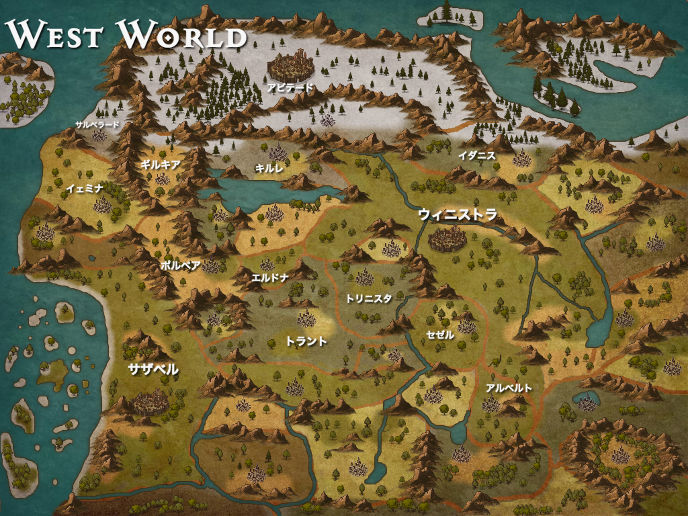 話に名前が出てきているのに名前が載っていない国や、東にあるため地図に載っていない国もありますが、物語が進行していく中で適宜更新していきたいと思います。