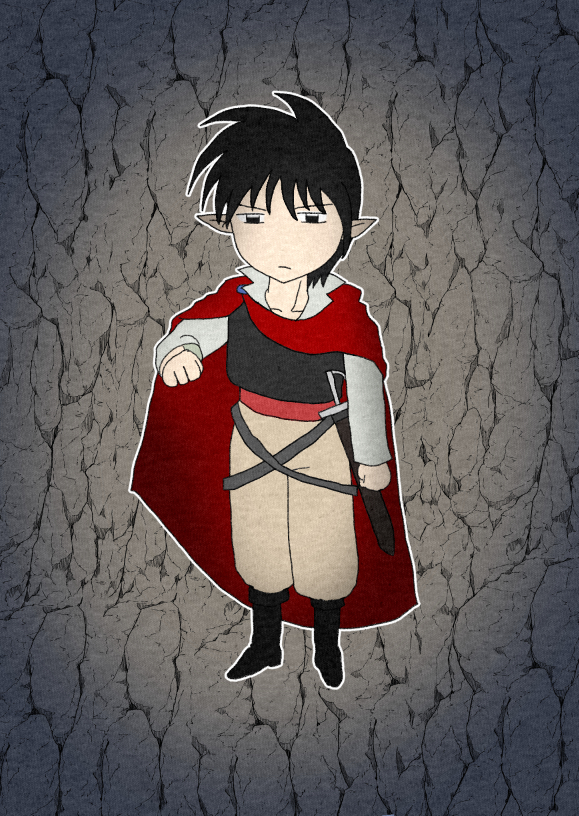 と声が聞こえた。声の方を見ると、石像の影になっている部分に、黒い服とマントを身に纏い帯剣している精霊がいた。精霊はグレイから少し離れたところまで飛んでくる。グレイの顔をまじまじと見られ、怪訝そうに