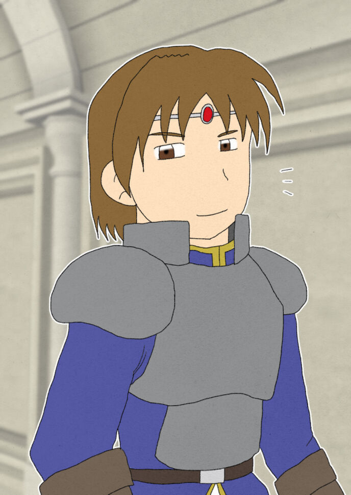 一夜明け、七人が謁見の間の前に揃う。カルロはいつもの服と違って鎧を身に着けていた。