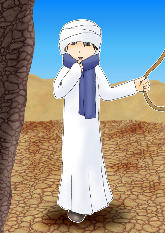 しおりを挟む全員は白いローブに身を包み、ブーツをしっかりと履き、皮水筒を背負う。荷物と予備の水は借りたラクダに載せた。こうして一行は砂漠に向かった。村からは少し離れた場所にあるとはいえ、見える一面の砂の風景にまっすぐ進む。