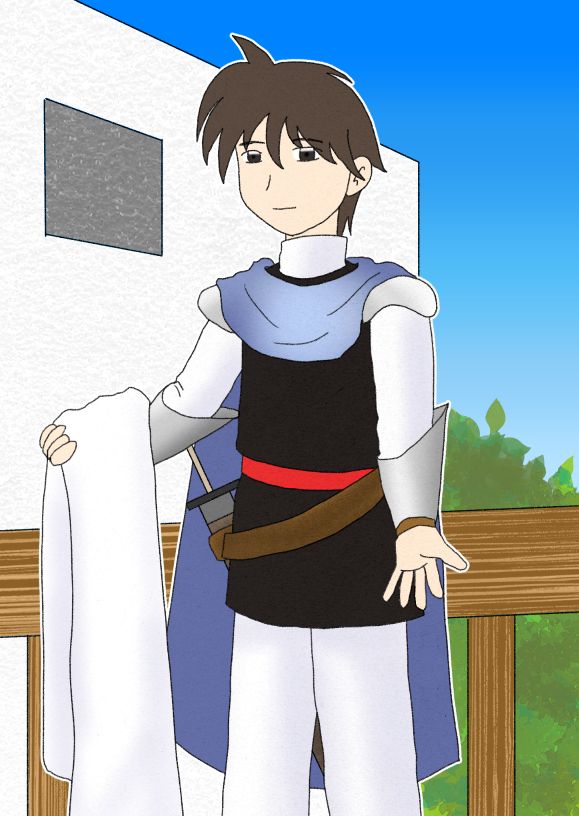 「傭兵時代はこの格好で働いてました。元々は学術専門でしたが、先も言いましたようにこの時代では、一剣士として生きていました。今は戦争もない平和な時代。魔物討伐の方が多かったですね。特にセルヴィーテの方では魔物が多く出る地域もありましたし。そういう面では給料は良かったですよ」