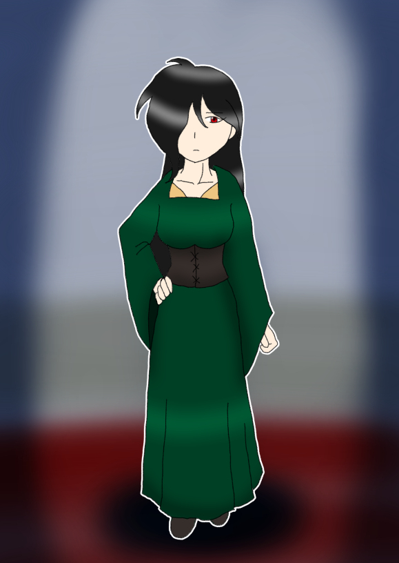 黒い鳥がそう言うと扉は鈍い音を立てて開いた。中は暗い。恐る恐る館の中に入ると扉は自然と閉じた。真っ暗闇になったと思った瞬間、ゆっくりと館の中は明るくなる。目の前には深緑のローブを着た、右目が髪で隠れている黒髪の女性が立っていた。女性は