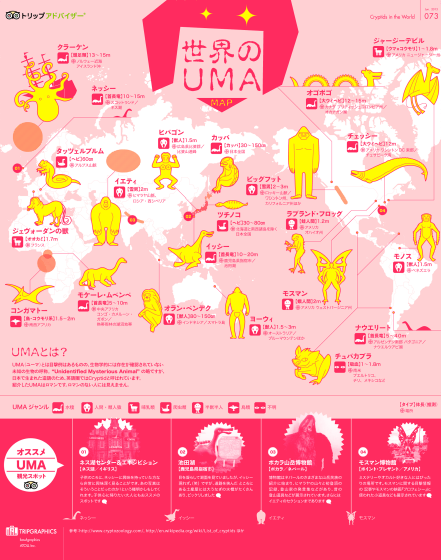 なんだかわかったようなよくわからないような気になってしまいますね。日本で「UMA」って呼ばれるのはきっと「未確認飛行物体」を「UFO」って呼ぶんで、それにならってのことでしょう。