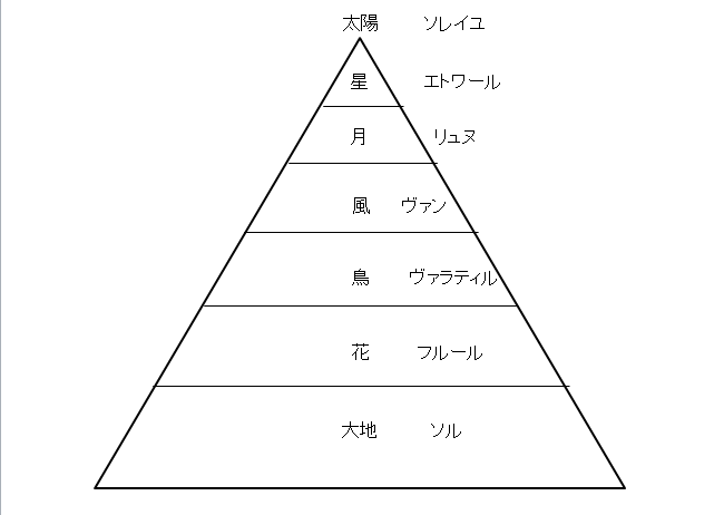 「私わたくしは第3階級、風ヴァンですわ。夫と共に、寮の管理人をしておりますの。私のことはピーテット夫人と呼びなさい。そして、あなたはソルですから、階級を示すアクセサリーは支給されませんけど、第5階級から支給されますからアクセサリーで相手の立場を即座に判断し、身の程をわきまえることですね」