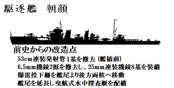 第32駆逐隊は駆逐艦朝顔を含む4隻全ての艦は大正時代に採用された旧式艦、もちろん水中調音器や音響探知機などの装備は最新式の物に変更されていて速力も35,5ノットと速度もでるが、なにしろボイラーは古いから加速は鈍く音も大きい。